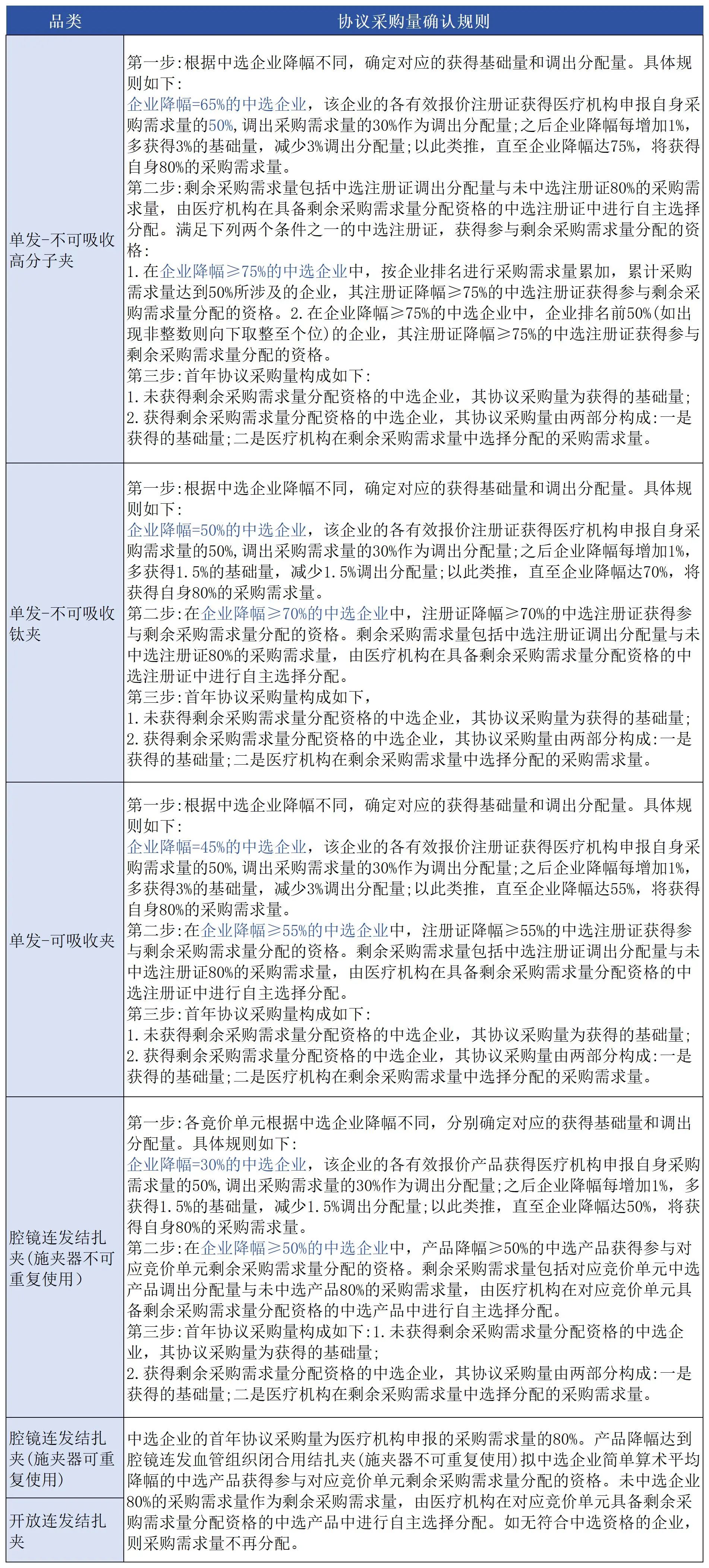本次結(jié)扎夾集采區(qū)分出單發(fā)血管組織閉合用結(jié)扎夾(不可吸收高分子夾、不可吸收鈦夾、可吸收夾)、腔鏡連發(fā)結(jié)扎夾(施夾器不可重復(fù)使用、施夾器可重復(fù)使用)以及開放連發(fā)結(jié)扎夾共6類產(chǎn)品,將分別確定協(xié)議采購(gòu)量。