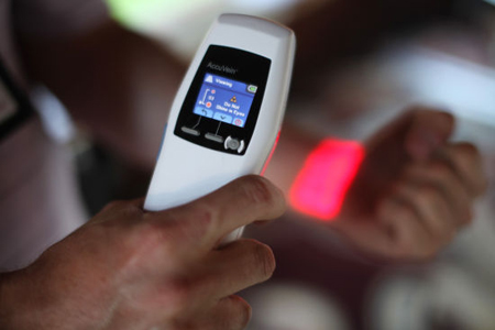 據(jù)介紹,這種外觀比電視遙控器大不了多少的便攜式、非接觸靜脈定位儀,可以幫助護(hù)士在進(jìn)行靜脈穿刺時(shí)準(zhǔn)確找到靜脈的位置。其工作方式是首先使用紅外光檢測到皮膚之下的靜脈,然后在皮膚表面用光照標(biāo)明靜脈的位置。