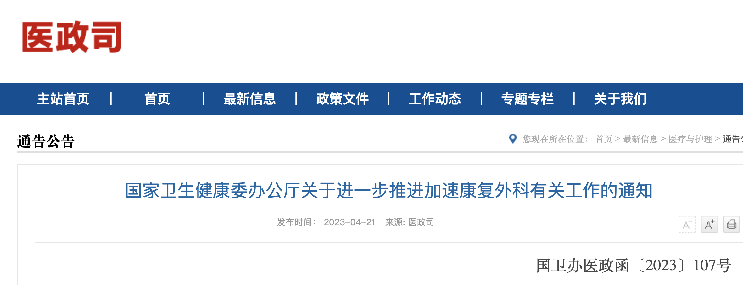 4月21日,國家衛健委辦公廳發布《關于進一步推進加速康復外科有關工作的通知》(以下簡稱《通知》),要求進一步推進加速康復外科有關工作。