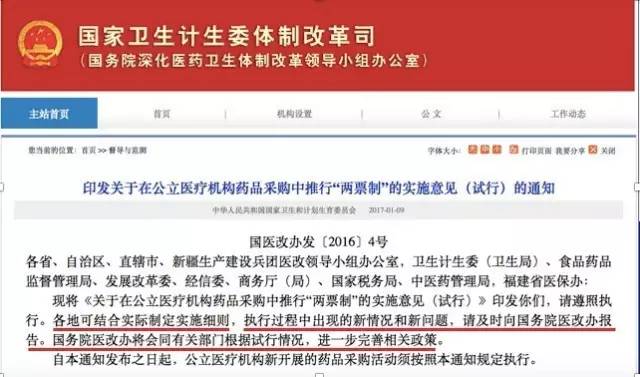 根據(jù)實(shí)施意見,公立醫(yī)療機(jī)構(gòu)藥品采購管理中逐步推行“兩票制”,鼓勵(lì)其他醫(yī)療機(jī)構(gòu)在藥品采購中推行“兩票制”。2016年,綜合醫(yī)改試點(diǎn)省(區(qū)、市)要在全省范圍內(nèi)執(zhí)行“兩票制”,積極鼓勵(lì)公立醫(yī)院改革試點(diǎn)城市推行“兩票制”,鼓勵(lì)其他地區(qū)推行“兩票制”。