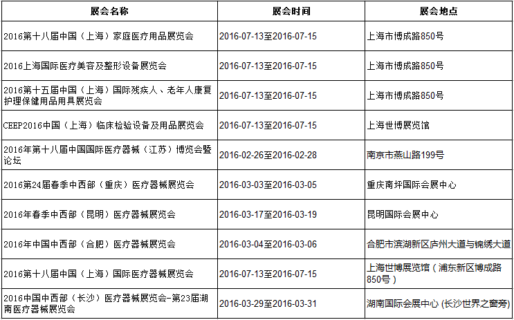 2016國(guó)內(nèi)醫(yī)療器械展一覽表