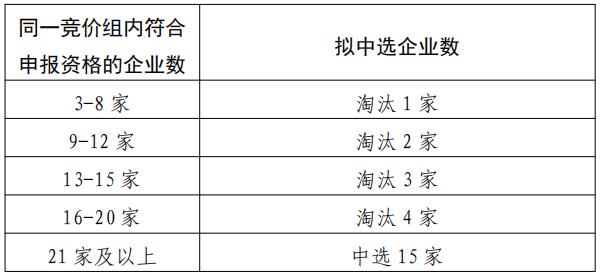 同一競價組內,若存在關聯關系的企業排名連續,且分別屬于擬入中選企業與非中選企業的,則該擬中選企業視為非中選。兩類耗材采取同樣的中選企業數量確定原則,具體如下: