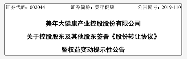 今日(10月28日),美年大健康產業控股股份有限公司發布公告稱于2019年10月26日收到公司控股股東上海天億資產管理有限公司、公司股東上海天億實業控股集團有限公司、上海美馨投資管理有限公司的通知。