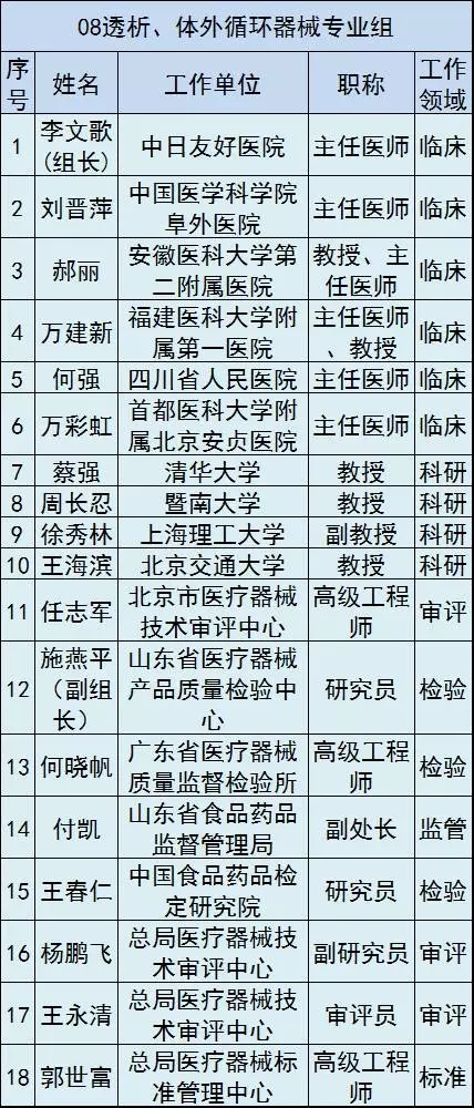 按照規定,這16個專業組委員將直接參與本組相關醫療器械產品的風險評估、分類界定、分類目錄維護等工作。