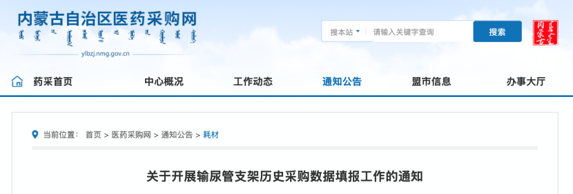 8月8日,內蒙古自治區醫藥采購網發布《關于開展輸尿管支架歷史采購數據填報工作的通知》(以下簡稱《通知》),內蒙古將開展輸尿管支架歷史采購數據填報工作。