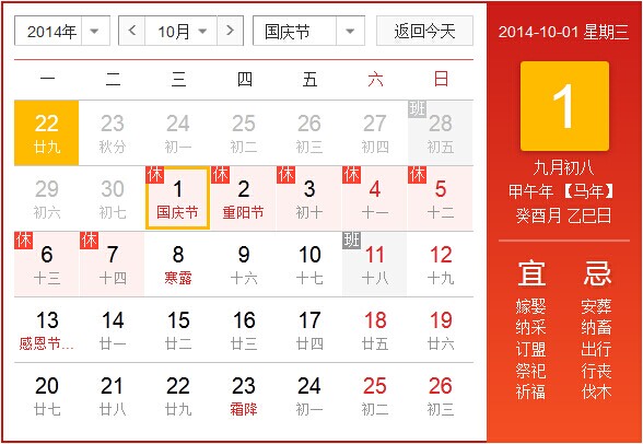 2014年北京華康普美科技有限公司,“國慶節(jié)”假期為:10月1日(星期三)至10月7日(星期二)共放假7天,10月8日(星期三)正常上班。