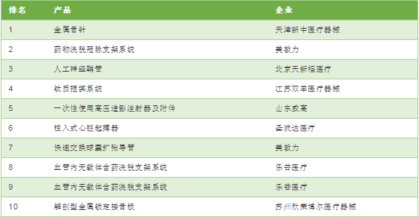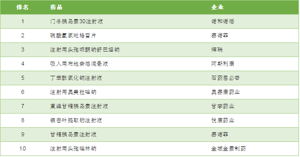 內蒙古9月份藥品、耗材銷售前10名榜單發布
