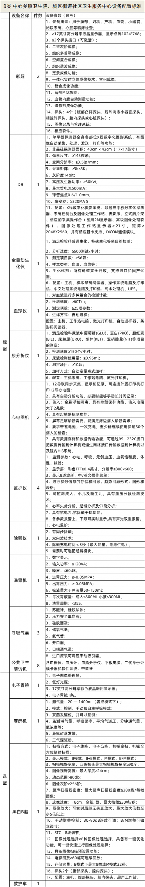 縣級醫院對醫療設備的需求大致如此。鄉鎮衛生院目前的設備配置標準,我們可以參考一下浙江省: