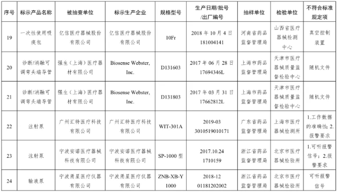 二、對上述抽檢中發現的不符合標準規定產品,國家藥品監督管理局已要求企業所在地省級藥品監督管理部門按照《醫療器械監督管理條例》《醫療器械生產監督管理辦法》和《醫療器械召回管理辦法》等法規規章要求,及時作出行政處理決定并向社會公布。企業所在地省級藥品監督管理部門要督促相關企業對抽檢不符合標準規定的產品進行風險評估,根據醫療器械缺陷的嚴重程度確定召回級別,主動召回產品并公開召回信息;督促企業盡快查明產品不合格原因,制定整改措施并按期整改到位。