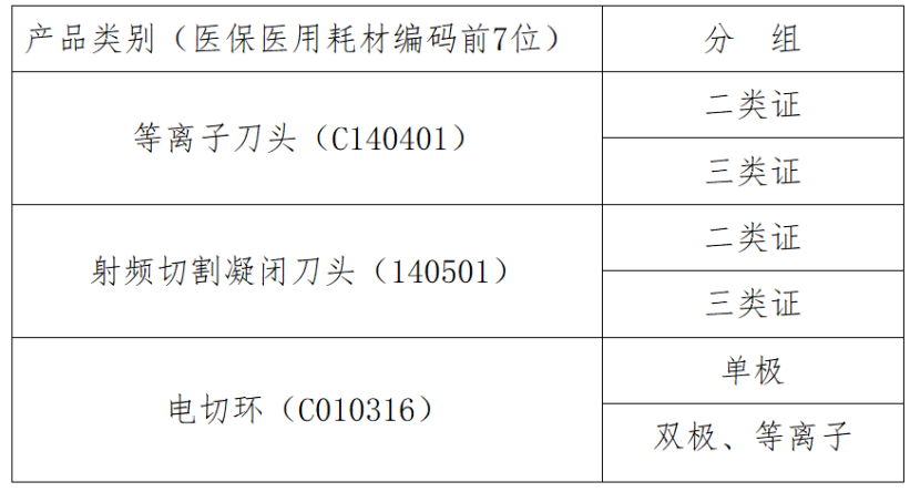 根據《通知》,此次信息維護涉及一次性等離子刀頭、射頻切割凝閉刀頭、電切環。國家醫保局醫保醫用耗材編碼前7位為 C140401、C140501、C010316的產品。