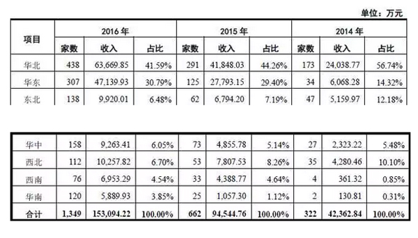 隨著公司授權(quán)分銷品牌和產(chǎn)品線的持續(xù)增加,與公司合作的下游經(jīng)銷商數(shù)量也快速上升,經(jīng)銷商數(shù)量由2014年的322家,增長(zhǎng)到2016年的1,349家,呈快速增長(zhǎng)趨勢(shì),也表明公司在產(chǎn)業(yè)鏈上的地位不斷加強(qiáng)提升。本公司經(jīng)銷商按地域分布情況如下: