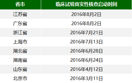 期間,全國已經(jīng)有8個省市陸續(xù)發(fā)布了轄區(qū)內(nèi)醫(yī)療器械臨床試驗真實性核查的通知。小編對其進行了 一下匯總(包括真實性核查的啟動時間),如下表所示。