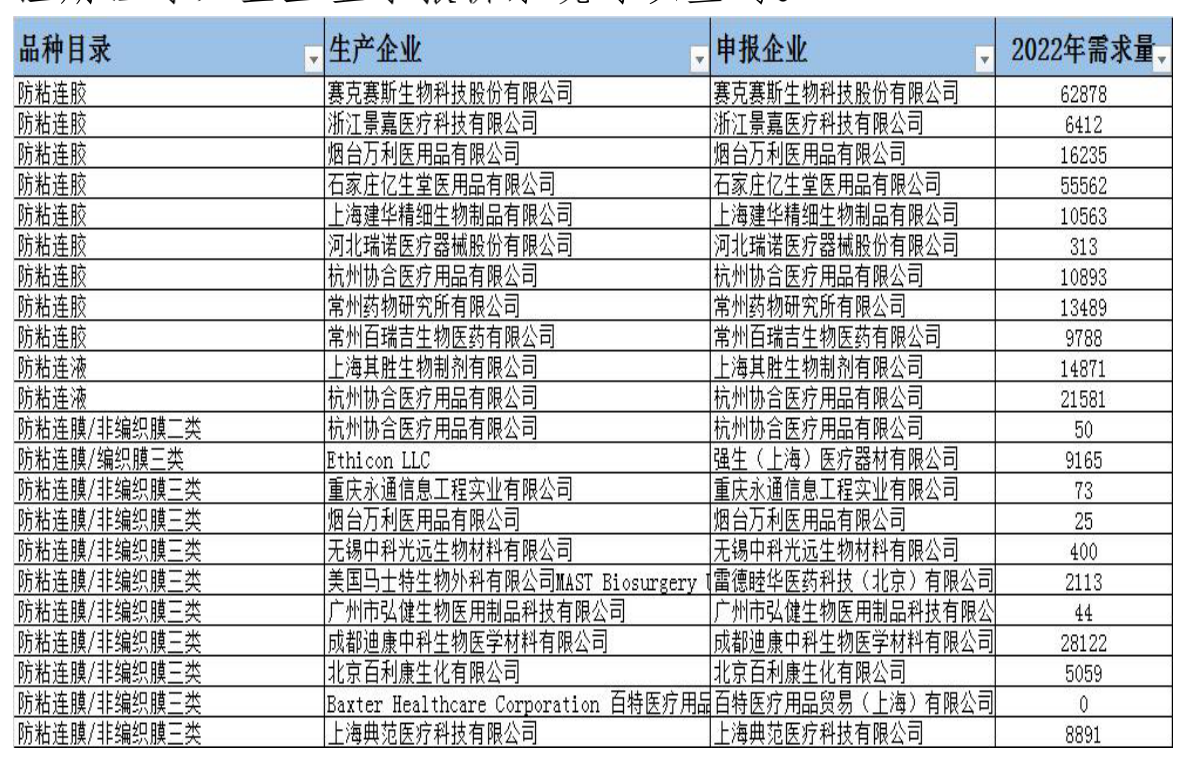 防粘連材料集中帶量采購品種為防粘連膠、防粘連液、防粘連膜。