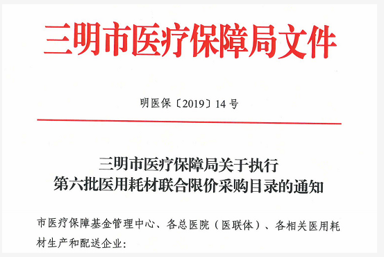 據(jù)悉,三明市第六批聯(lián)合限價的工作開始于2018年11月12日,當時,三明市醫(yī)療保障局發(fā)布《三明市公立醫(yī)療機構(gòu)醫(yī)用耗材(試劑)聯(lián)合限價采購(第六批)通知》,按照“為用而釆,去除灰色、價格真實”的原則,對全市公立醫(yī)療機構(gòu)在用的醫(yī)用耗材(試劑)進行聯(lián)合限價釆購。如今,經(jīng)過5個月的價格梳理等一系列工作,第六批聯(lián)合限價正式執(zhí)行。
