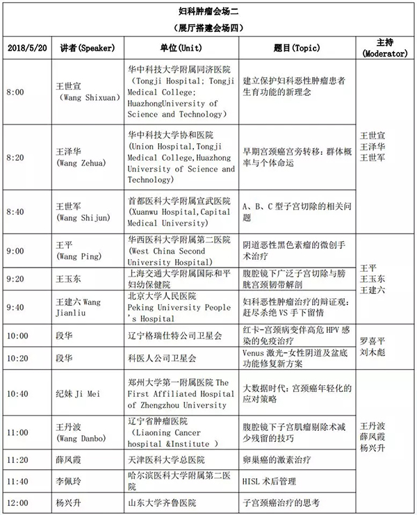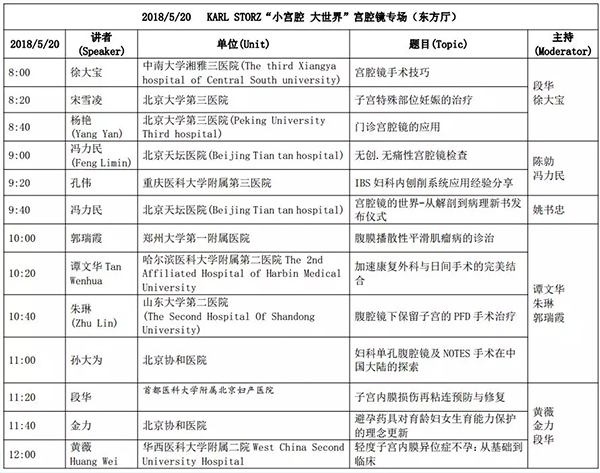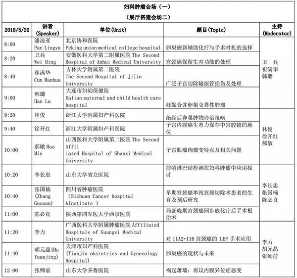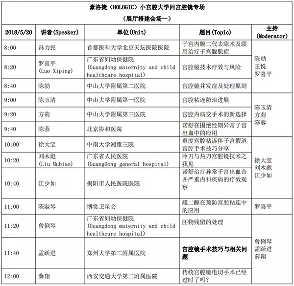 5月18日:全天腹腔鏡手術演示各類婦科腹腔鏡手術(手術視頻將由北京協和醫院、北京天壇醫院、中山大學附屬第一醫院同時手術轉至白云國際會議中心演示)