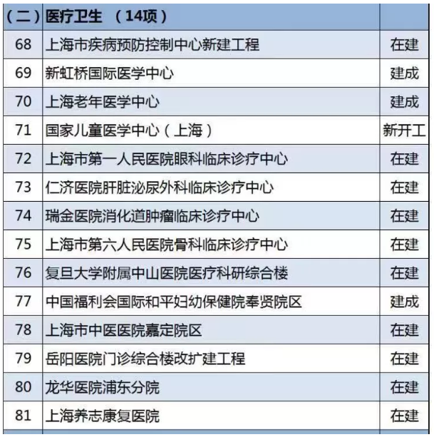 《清單》中,上海市對(duì)2021年即將落地的重大建設(shè)項(xiàng)目進(jìn)行了公布。值得注意的是,在166項(xiàng)正式項(xiàng)目中,共涵蓋了14項(xiàng)醫(yī)療衛(wèi)生相關(guān)建設(shè)內(nèi)容。
