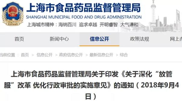 上海市食品藥品監(jiān)督管理局關于深化“放管服”改革優(yōu)化行政審批的實施意見