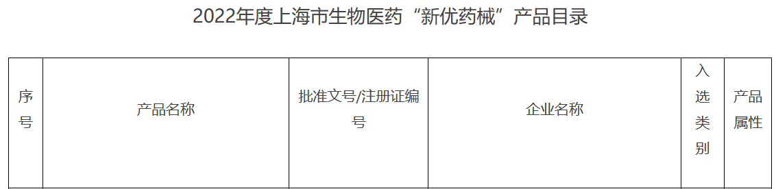 《2022年度上海市生物醫(yī)藥“新優(yōu)藥械”產(chǎn)品目錄》(器械部分)