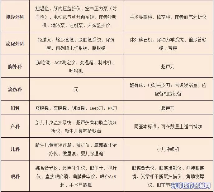 縣級(jí)醫(yī)院相關(guān)科室醫(yī)療設(shè)備配備表