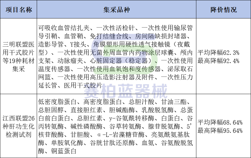 根據《通知》,三明聯盟醫用干式膠片等19種耗材與江西聯盟26種肝功生化檢測試劑將于2025年1月1日起在河北省執行新的采購年度,具體品種與降價情況如下: