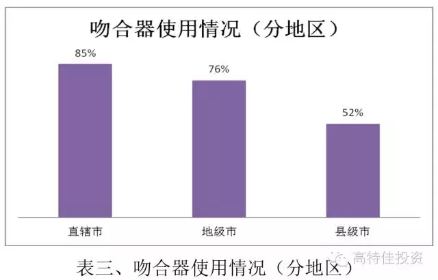 隨著我國醫療體制改革的深入,國家鼓勵一般疾病的手術盡量在縣級醫院層面得到解決,促使吻合器市場在基層放量。從各級別城市醫院對吻合器的應用來看,目前我國縣級市所屬醫院外科手術中吻合器的使用率約為52%,較之直轄市85%的使用率有較大展空間。