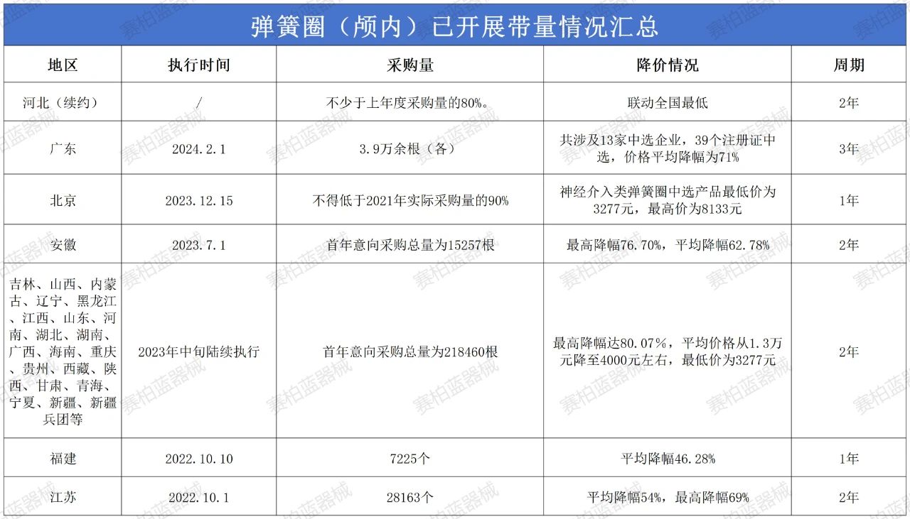 在技術(shù)圍墻較高的神經(jīng)介入領(lǐng)域,彈簧圈屬于國(guó)產(chǎn)替代程度較高的耗材,目前已在全國(guó)范圍經(jīng)歷了多輪集采,價(jià)格較早期有了明顯下降。