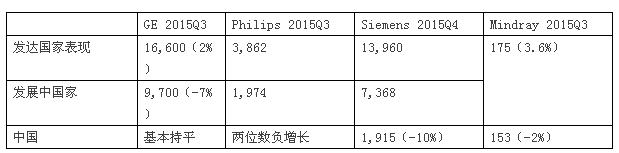 1、GE醫(yī)療(以下簡稱“哥”):訂單45億美金,下降4%。從區(qū)域來看,美國下降1%,歐洲下降5%,中國持平,中東增長15%。 從產(chǎn)品線來看,醫(yī)療系統(tǒng)的訂單下降7%。美國CT和MRI分別增長了10%和15%,而X光是下降的。歐洲增長7%,連續(xù)5個(gè)季度實(shí)現(xiàn)增長。中東增長22%,中國受政府招標(biāo)減少的影響下降了14%。即使中國私立醫(yī)院業(yè)務(wù)有雙位數(shù)的增長,但相比公立醫(yī)院的業(yè)務(wù)仍然較小。