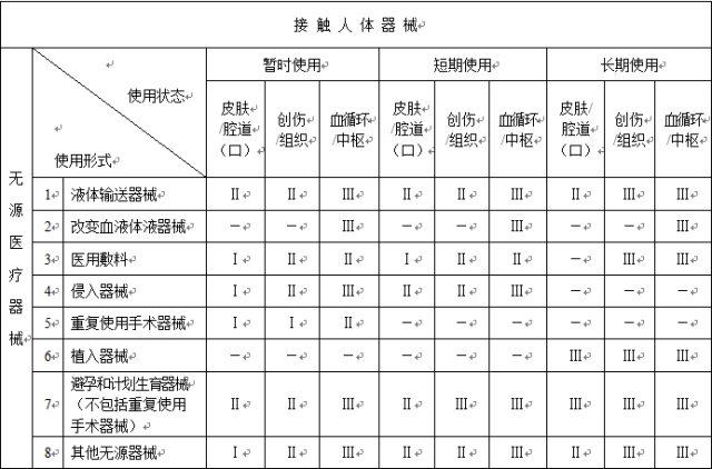 注:1.本表中“Ⅰ”、“Ⅱ”、“Ⅲ”分別代表第一類、第二類、第三類醫療器械;
