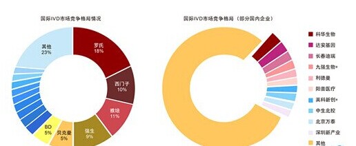 目前國際體外診斷試劑市場是有羅氏、雅培、西門子以及強生形成競爭格局,由于強生剝離了Ortho臨床診斷業務,使其在體外診斷試劑市場排名第四。