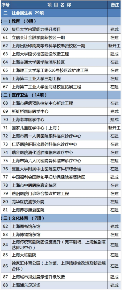 關于醫療衛生項目共有14項,其中計劃建成新虹橋國際醫學中心、上海老年醫學中心和國婦幼奉賢院區3項,計劃新開工國家兒童醫學中心(上海)1項。