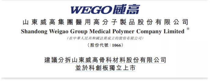 此外,今年5月15日,威高股份發布2019年年報也表示,公司正考慮可能分拆威高骨科及其附屬公司并于中國一間證券交易所獨立上市。