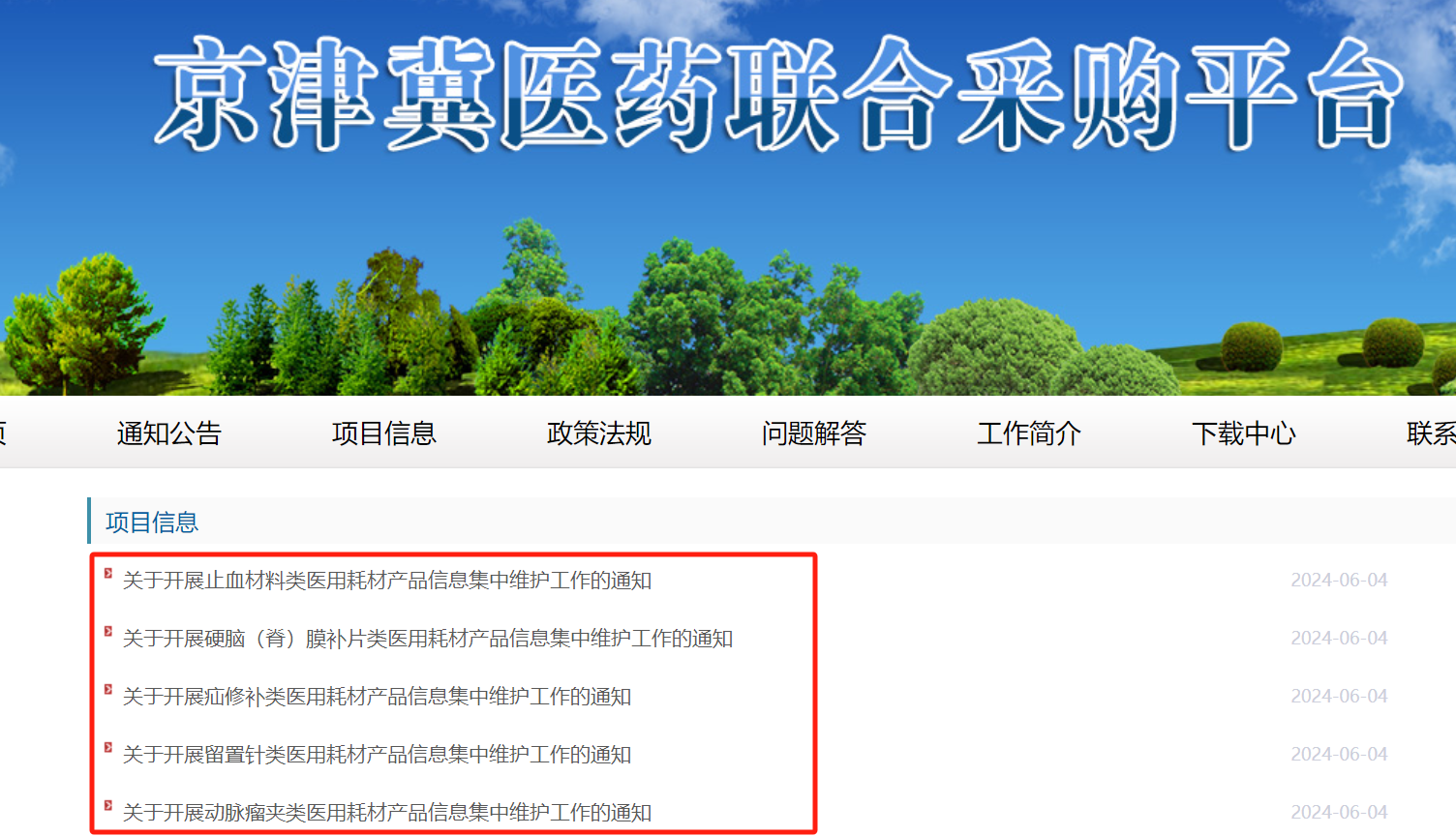 6月4日,天津市醫(yī)藥采購中心接連發(fā)布發(fā)布5則通知:將于6月6日起對動脈瘤夾、留置針、疝修補、硬腦(脊)膜補片、止血材料5類耗材開展信息集中維護工作。