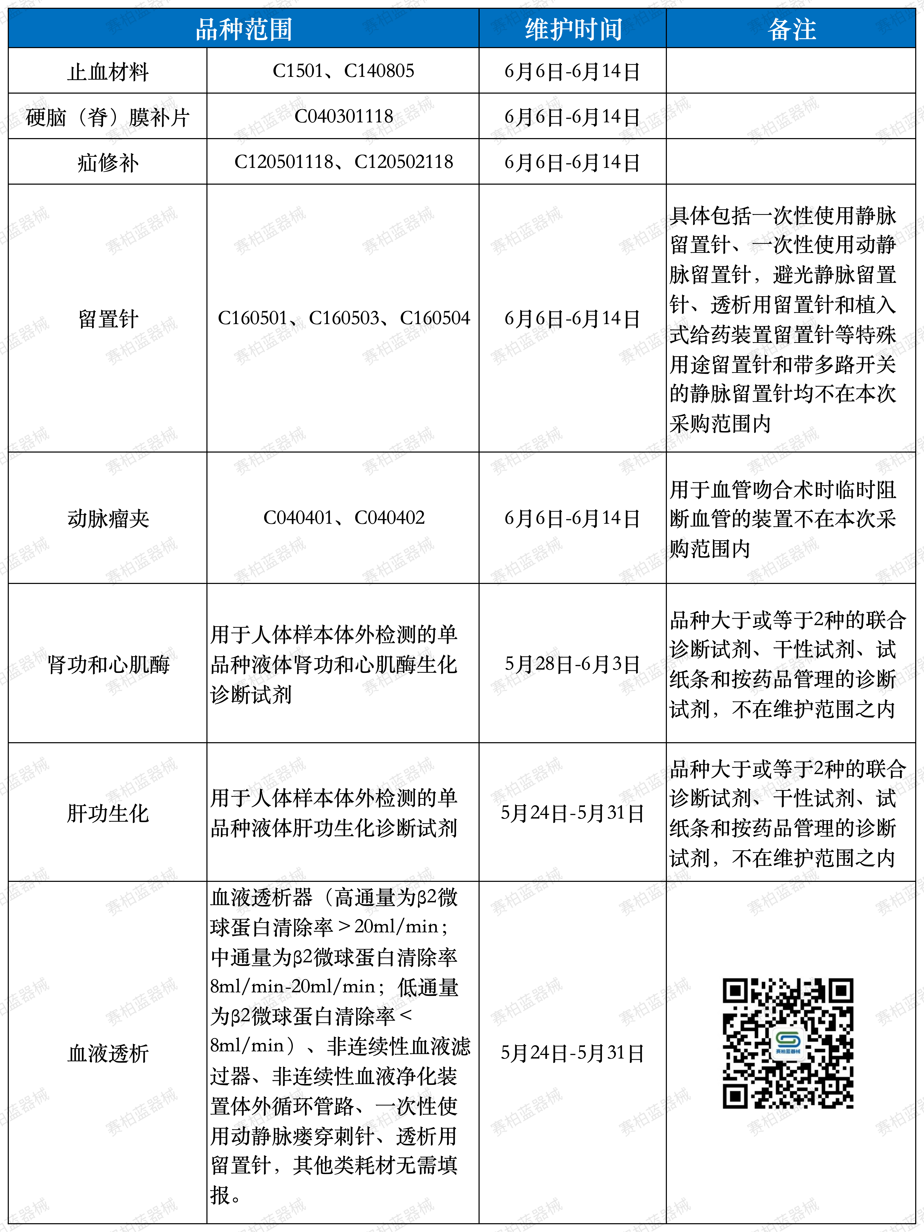 除了上述五類耗材,日前該平臺還發(fā)布了關于血液透析類、肝功生化試劑、腎功和心肌酶生化試劑開展信息維護的通知(詳見《四大耗材品種集采擴圍》),綜合整理如下:
