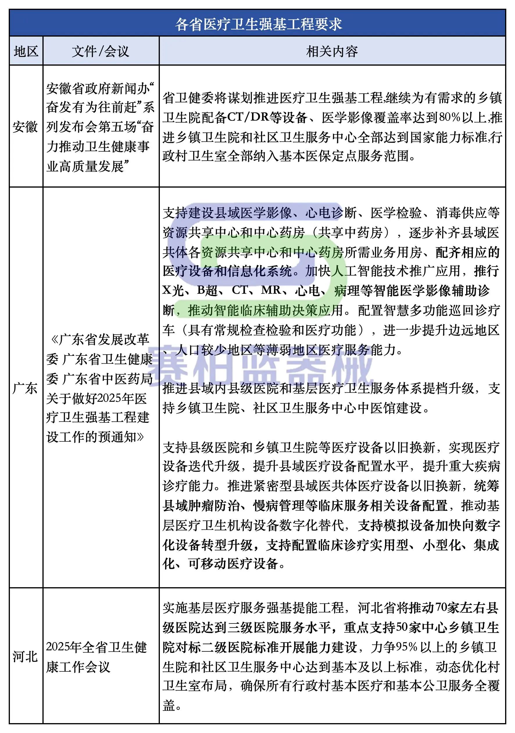 截至目前,已有河北、河南、江蘇、福建、四川、寧夏、黑龍江、湖南等多地縣域醫共體設備更新項目密集推進。