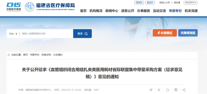 5月21日,福建省醫保局火速發布《血管組織閉合用結扎夾類醫用耗材省際聯盟集中帶量采購方案(征求意見稿)》(以下簡稱《征求意見稿》)(附文末),意見征求截止于5月28日。