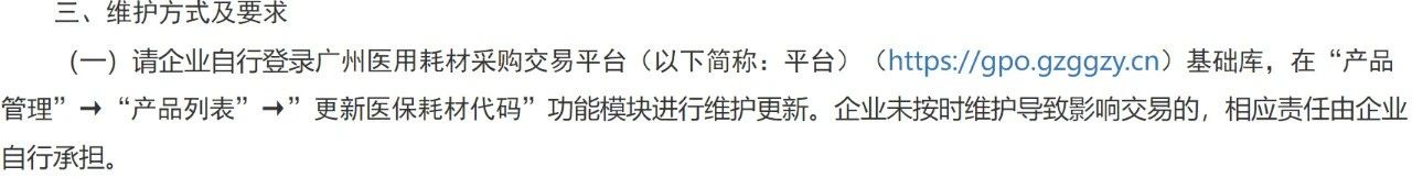 企業須對維護及提交信息的真實性、有效性、合法性負責。對提交及填報虛假信息的企業,一經查實或經舉報核實,平臺將如實向有關監管機構報送并按照招采信用制度進行評級,由此產生的相應責任由企業自行承擔。對于未按時維護耗材醫保編碼的企業相關產品暫不予掛網交易。