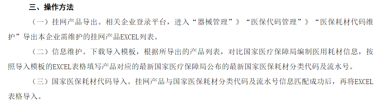 此次通知中并未給出具體的截止時間,但明確提出,已在平臺中掛網的醫用耗材,企業應及時做好醫保代碼維護工作。如后續國家醫療保障局公示新批次國家醫保醫用耗材分類與代碼數據信息,此項工作繼續進行。