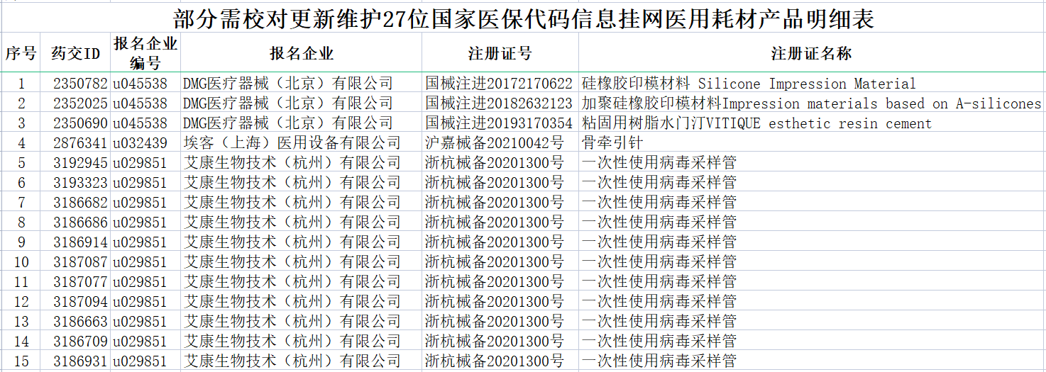 7月6日,重慶藥品交易所發布《關于進一步做好維護國家醫保醫用耗材代碼工作的通知》。其中規定,國家醫保醫用耗材代碼維護范圍為屬于國家醫保醫用耗材分類目錄范圍,企業已在國家醫保局“醫保醫用耗材分類與代碼數據庫動態維護”維護且通過公示進入國家醫保醫用耗材分類與代碼數據庫的產品。如后續國家醫療保障局公示新批次國家醫保醫用耗材分類與代碼數據信息,此項工作繼續進行。