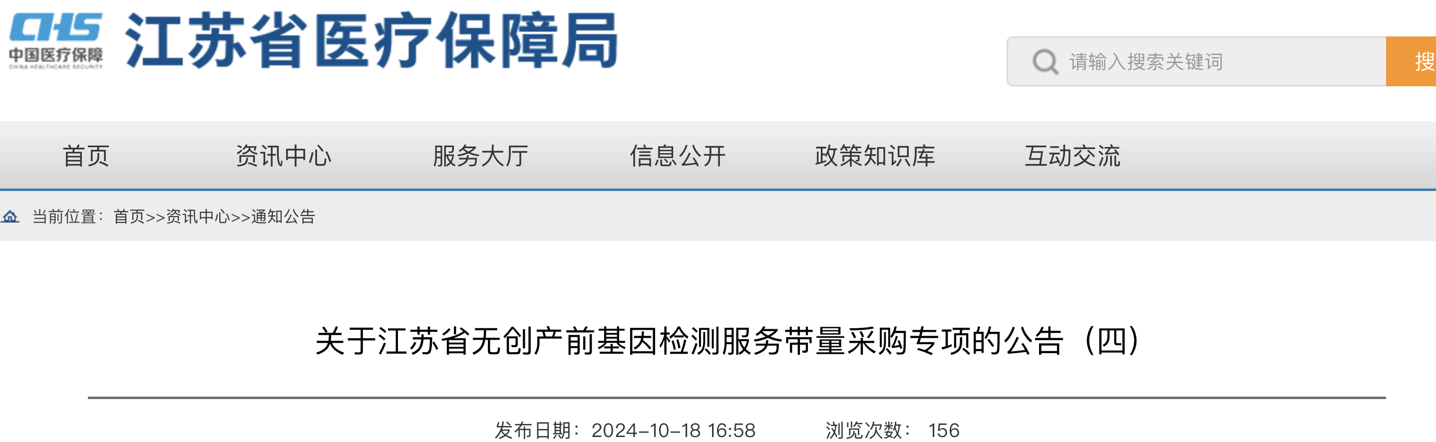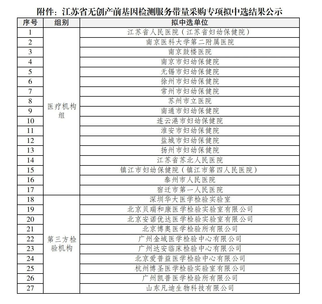 10月18日,江蘇省無創(chuàng)產(chǎn)前基因檢測服務(wù)帶量采購專項(xiàng)擬中選結(jié)果公示。