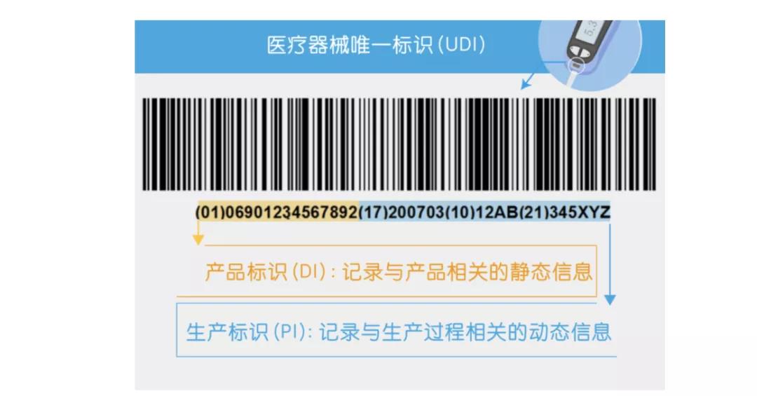 其中,器械標識DI屬于靜態信息,它是醫療器械產品在供應鏈中的身份標識,可作為進入數據庫查詢該產品追溯基本信息的“關鍵字”。 而生產標識PI屬于動態信息,它包括醫療器械產品的序列號、批號、生產日期和有效期等,是醫療器械產品的動態附加信息,它與DI聯合使用,才能指向特定的醫療器械產品。