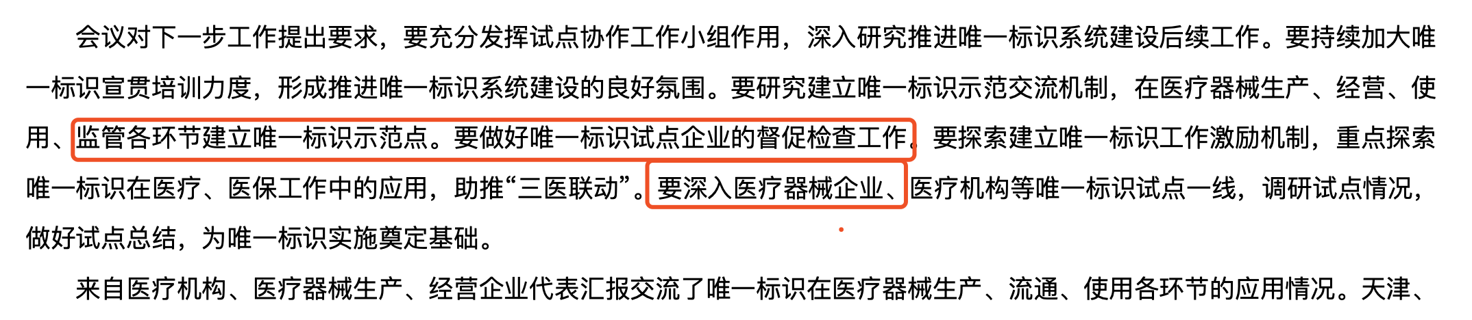 需要指出的是,在《規劃》中,著重指出了:要分步實施醫療器械唯一標識制度,拓展醫療器械唯一標識在衛生健康、醫療保障等領域的銜接應用。