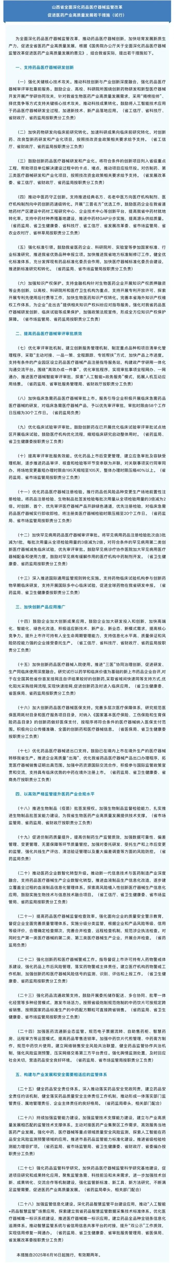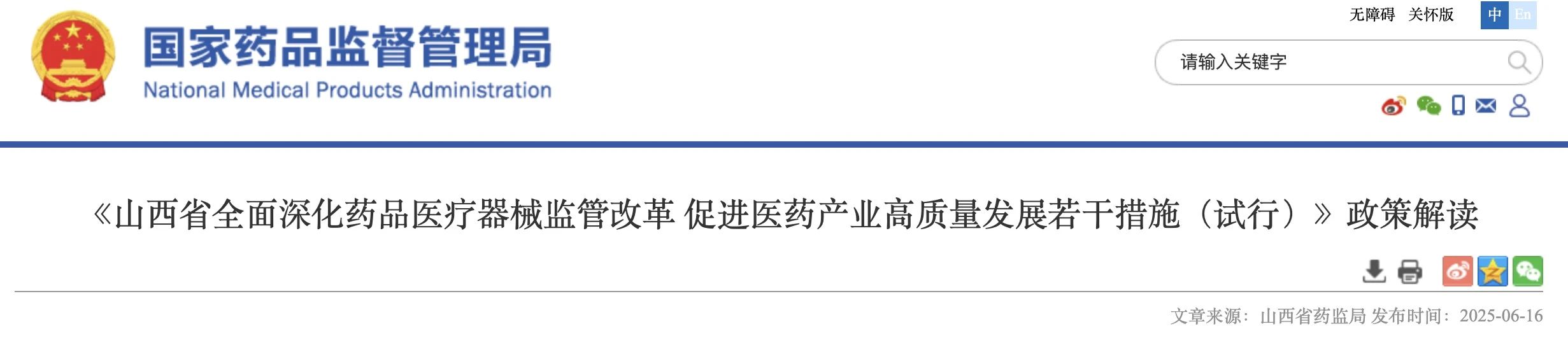 6月16日,國家藥監(jiān)局官網(wǎng)轉(zhuǎn)發(fā)《山西省全面深化藥品醫(yī)療器械監(jiān)管改革 促進醫(yī)藥產(chǎn)業(yè)高質(zhì)量發(fā)展若干措施(試行)》政策解讀。
