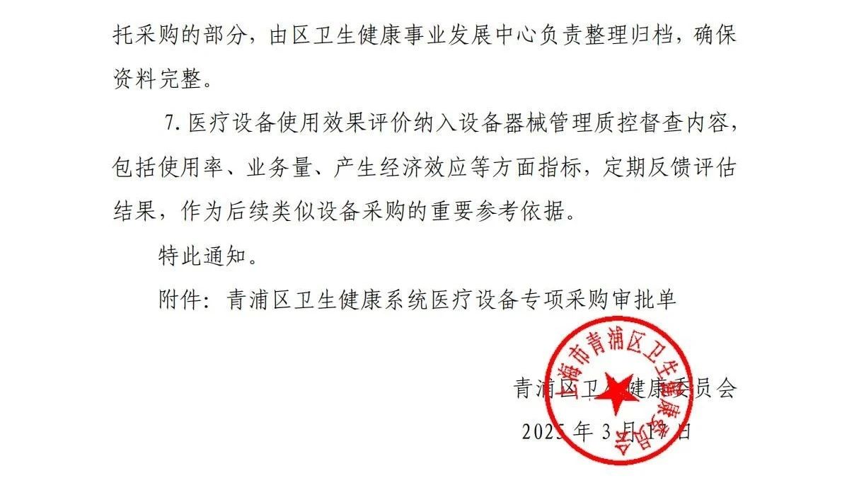 此次《通知》還涉及設備驗收、質控督查等內容,并要求定期反饋評估結果,作為后續類似設備采購的重要參考依據。