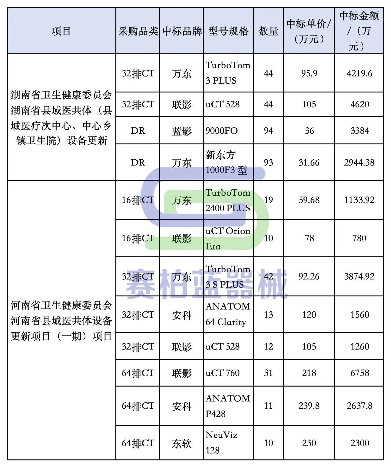 其中,河南省衛生健康委員會河南省縣域醫共體設備更新項目(一期)項目的CT采購大單公布中標結果。