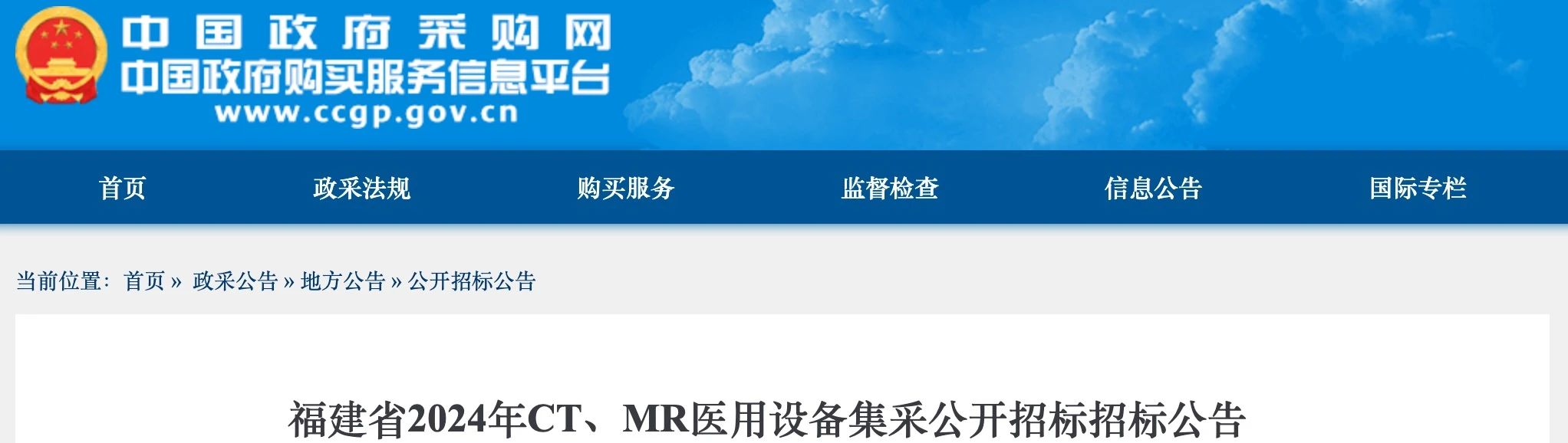 近日,中國政府采購網(wǎng)發(fā)布《福建省2024年CT、MR醫(yī)用設(shè)備集采公開招標(biāo)招標(biāo)公告》(簡稱《公告》),預(yù)算總計8.97億元人民幣,總數(shù)量達(dá)92臺。