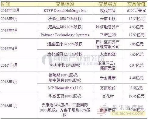 圖表1:2016年中國醫(yī)療器械行業(yè)海內外投資布局情況(單位:萬美元,億元)