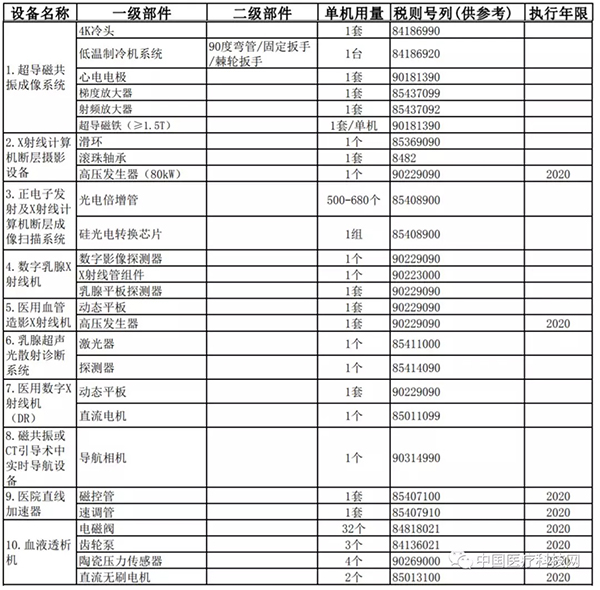 我們來看看附件1,共有10款醫(yī)療設(shè)備,而其中7款是目錄新修訂后增加進(jìn)去的,這也就是說,在這一次修訂中,重大醫(yī)療設(shè)備將在進(jìn)口關(guān)稅上獲得空前的扶持。