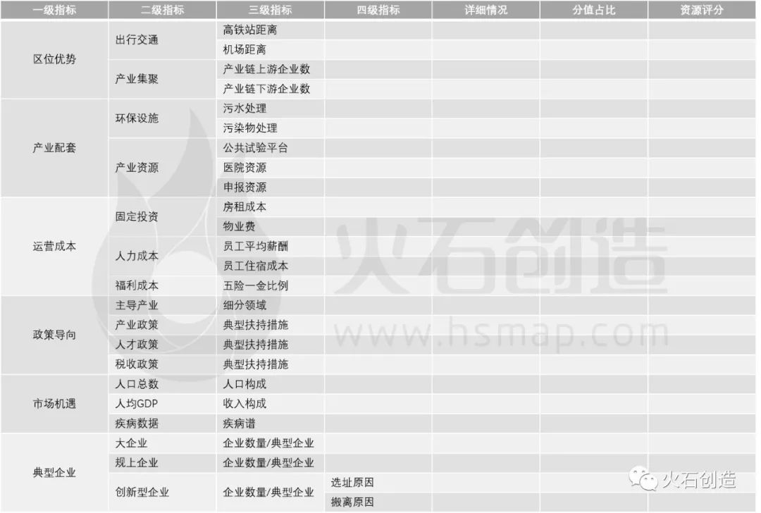 深入研究企業(yè)選址決策邏輯,協(xié)助企業(yè)做出科學(xué)合理的投資選址方案,需要建立一個系統(tǒng)的科學(xué)量化指標,因為不同階段的生物醫(yī)藥企業(yè)對承載空間、產(chǎn)業(yè)資源、政策支持等方面的需求也不盡相同。