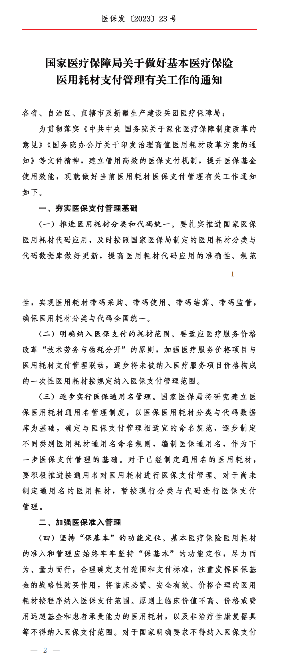 全國醫保醫用耗材支付管理大調整。
