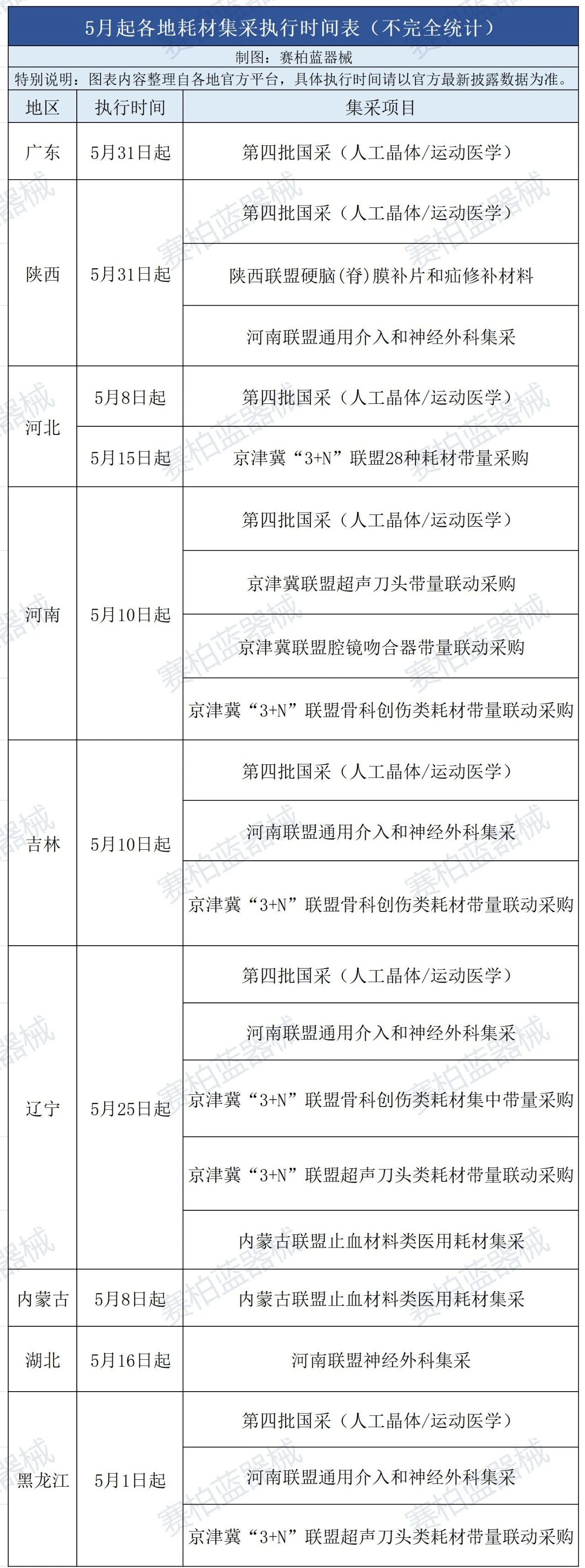 據賽柏藍器械不完全統計,5月將有廣東、陜西、河北、河南、吉林、遼寧、內蒙古、湖北等多地迎來相關耗材的新一輪降價。